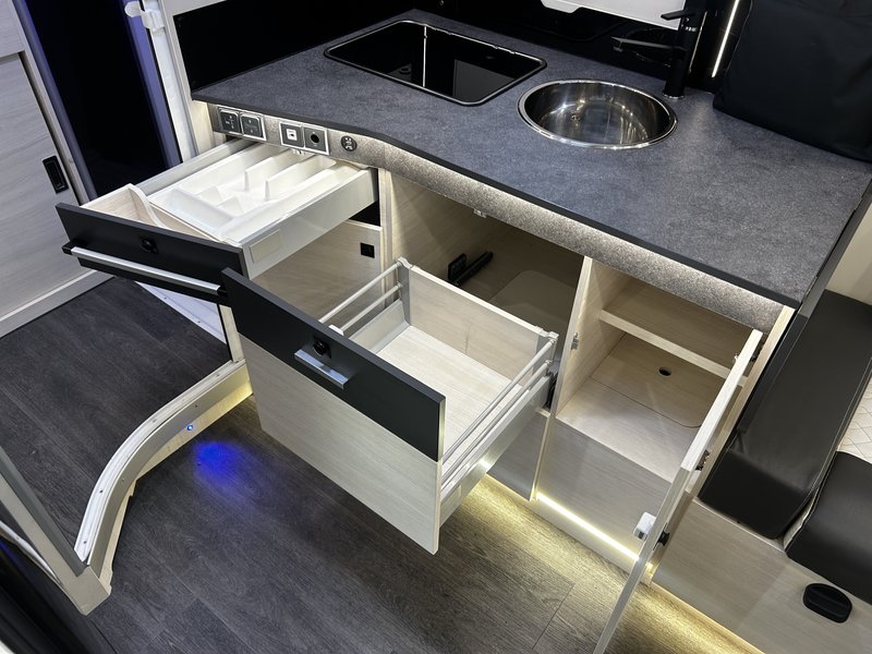 - Arctic: Isolierter u. beheizbarer Abwassertank, Fahrerhausvorhänge außen, Winterabdeckung für Kühlschrankgitter, Diesel Heizung +, Fußbodenheizung (-erwärmung)