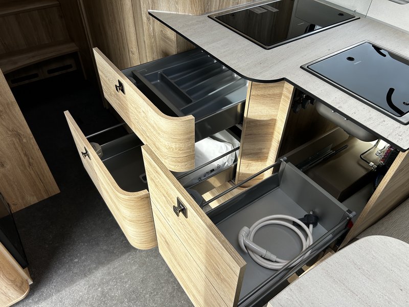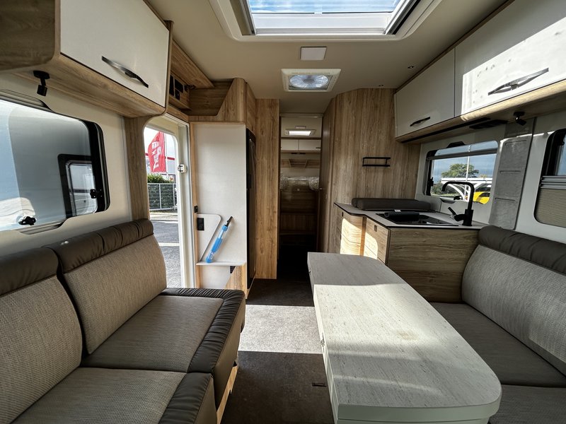 elektrische Parkbremse, Traction Plus inkl. Hill-Descent-Control, Lenkradbedienelemente, 16 Alufelgen, Lederlenkrad und Schaltknauf in Leder, Armaturenbretttafel in Techno-Trim, Comfort-Sitze Integra Line inkl. Höhenverstellung und Lordosestütze, Manuelles Verdunklungssystem, Dachhaube Heki, Aufbautür mit 2-Punktverriegelung + Zentralverriegelung, Elektrischer Dachlüfter, Mückengittertür, Vorverkabelung für Solaranlage, Naviceiver mit Doppelaugen-Rückfahrkamera, Fahrerhausteppich, Außendusche, elektrisches Frontplisée, Gasaußensteckdose, Isolierende Doppelverglasung, Lithium- Batterie, Multifunktionssteckdose, Automatikgetriebe, 180PS Motor Fiat, Fahrgestell - Maxi 4,4t