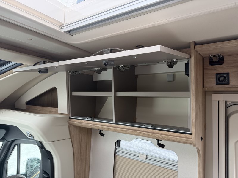 Elektrische Außenspiegel (MB), Captain-Chair-Sitze (Aguti), Smartphone Integration, Ablage für Smartphone inkl. Wireless Chargin, Lenkrad in Höhe und Neigung verstellbar, Klimaanlage für Fahrerhaus, Wärmedämmendes Glas mit Bandfilter, Lackierung Uni-Schwarz, Aufbautür mit 2-Punktverriegelung + Zentralverriegelung, Dach - Panorama aufstellbares Kunststoffdach ''Sun Roof'', Elektrischer Dachlüfter, Dachhaube Heki, manuelles Verdunkelungs-System für Fahrerhaus, Mückengittertür, Vorverkabelung für Solaranlage