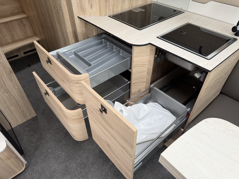 (Elektrische Außenspiegel (MB), Captain-Chair-Sitze (Aguti), elektrische Feststellbremse, Klimaanlage Fahrerhaus, Tempomat, Wärmedämmendes Glas mit Bandfilter, , Aufbautür mit 2- Punktverriegelung + Zentralverriegelung, Dach - Panorama aufstellbares Kunststoffdach Sun Roof, Elektrischer Dachlüfter, Dachhaube Heki, manuelles Verdunkelungs-System für Fahrerhaus, Mückengittertür, Vorverkabelung für Solaranlage, Klimaautomatik Climatronic, Lederlenkrad, Fahrerhausteppich, Multifunktionssteckdose (außen), Außendusche (kalt/warm), Gas-Außensteckdose auf Beifahrerseite, Thermo-Vorhang, Exklusives Design-Heck, Lithium-Batterie (2 Stück), Ablagefach unter Cockpit, Klappdeckel für Ablagefächer, Akustik-Paket, 9G-Tronic Automatikgetriebe Mercedes-Benz, Motorisierung 170PS, MBUX 10'' Naviceiver inkl. Doppelaugen-RFK, 92 ltr Tank, Markise 4,5 m mechanisch, Stoßfänger & Anbauteile in Wagenfarbe, 17'' Alufelgen, Kühlergrill verchromt, Ladepaket Instrumententafel, Ablage für Smartphones inkl. Wireless Charger, Verkehrszeichenassistent, Aktiver Abstandsassistent Distronic, Außenlackierung Obsidian- Schwarz, Truma DuoControl mit Fernanzeige, Eis-Ex und Crashsensor, Fahrassistenz-Paket MB PT, 4. Sitzplatz, Polsterstoff ''Leder grau'', Dekoration ''Saga'', Außendekor Carbon, HY4 Komfortstützen AL-KO, Comfort-Drive Fahrwerk AL-KO, Kühlergrillumbau-Kit AMG Version (Händlernachrüstung, Bereitstellung ET), Solarpaket Victron (Händlernachrüstung, Bereitstellung ET), Garantieverlängerung Mercedes-Benz)