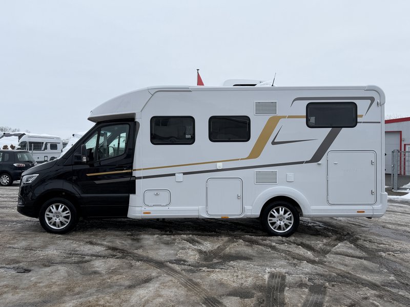 MBUX 10“ Naviceiver inkl. Doppelaugen-RFK, 92 ltr Tank, Markise 4 m mechanisch, Stoßfänger & Anbauteile in Wagenfarbe, 17“ Alufelgen, Kühlergrill verchromt, Ladepaket Instrumententafel, Ablage für Smartphones inkl. Wireless Charg, Verkehrszeichenassistent, Aktiver Abstandsassistent Distronic, Außenlackierung Obsidian-Schwarz, Truma DuoControl mit Fernanzeige, Eis-Ex und Crashsensor