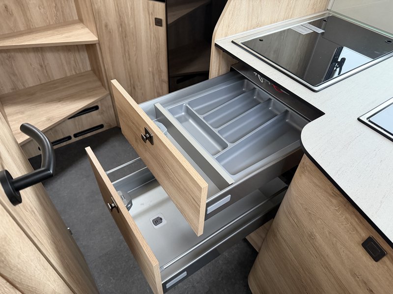 Naviceiver mit Rückfahrkamera, Klimaautomatik Climatronic, Lederlenkrad, 16 Alu-Felgen (MB), Fahrerhausteppich, Multifunktionssteckdose (außen), Außendusche (kalt/warm), Gas-Außensteckdose auf Beifahrerseite, Thermo-Vorhang, Exklusives Design-Heck, Lithium-Batterie, Ablagefach unter Cockpit, Klappdeckel für Ablagefächer, Akustik-Paket, 9G-Tronic Automatikgetriebe Mercedes-Benz, Motorisierung 170PS