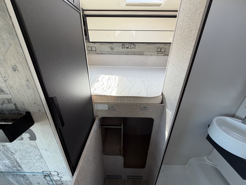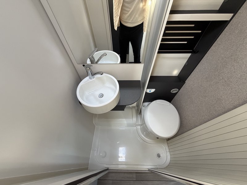 165PS, XL Tür mit 2-Punkt Verriegelung, Zentralverriegelung und Fenster, Skyroof, Micro Heki Bad, 220V Steckdose in der Garage, 2 USB Anschlüße am Bett (Lichtschalter), Abdeckung für Küchenspüle/Schneidebrett, Rahmenfenster, Isofix, Scheinwerfer mit staischem Abbiegeleicht, abschließbares Handschuhfach, Stoßstange und Seitenleisten in Wagenfarbe lackiert, Seitenwände in Expedition Grey, Rückfahrkamera