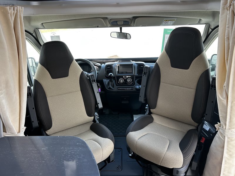 Pack Privilege: Lackierter Stoßstange + Nebelscheinwerfer, Radio 6,8'' (AppleCarPlay und AndroidAuto), Lenkradsteuerung, Rückfahrkamera HD, Passende Fahrerhaussitzbezüge, XL 2Punkt-Schliesstür + Zentralverriegelung, Rear Style mit Led-Scheinwerfer, Maxi Dachluke SkyView.