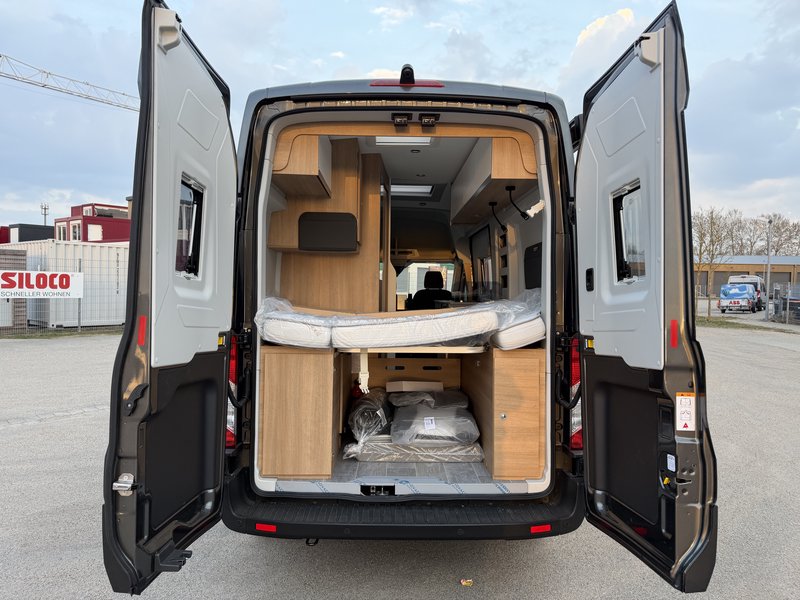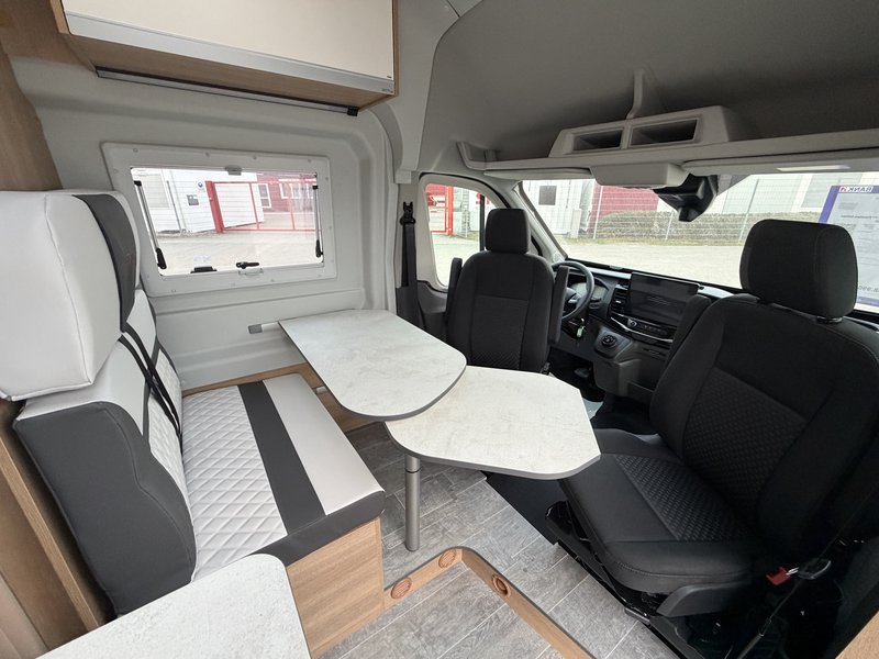 Automatische Klimaanlage, Lackierter Stoßstange, Scheinwerfer HIGH Series mit DR Led, Nebelscheinwerfer, Rückfahrkamera , Passende Fahrerhaussitzbezüge, Maxi Dachluke 700x500 , Plisse-Rollos Fahrarhaus, Zusatzbett in der Dinette, Fliegengittertür, Elektrische Eintrittstufe, 8-Gang Automatikgetriebe, Motor 165PS, 16'' schwarze Alufelgen, Markise, Polsterung "Nebula", Aufbauteppich, Fahrerhausteppich