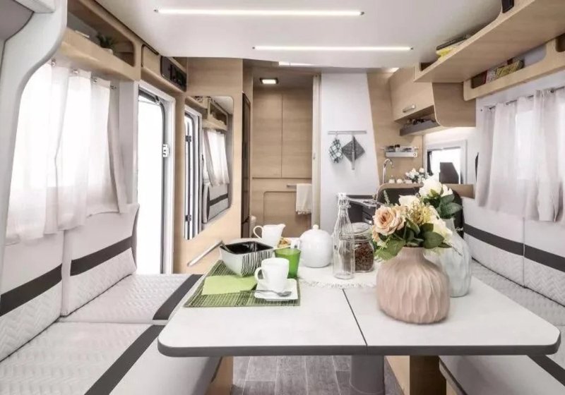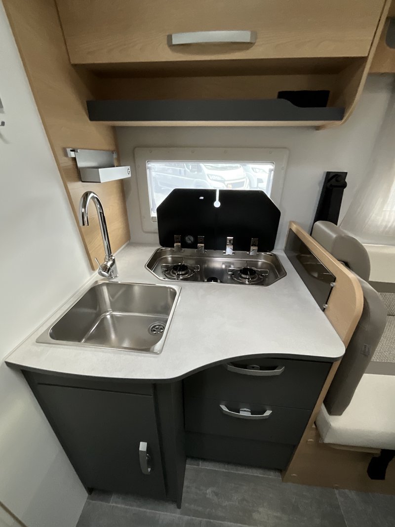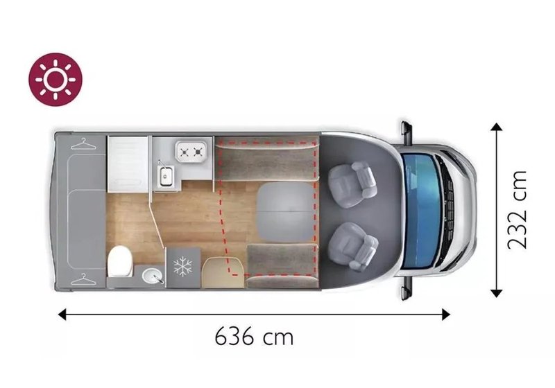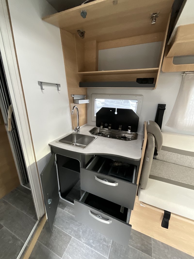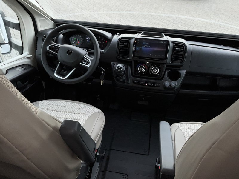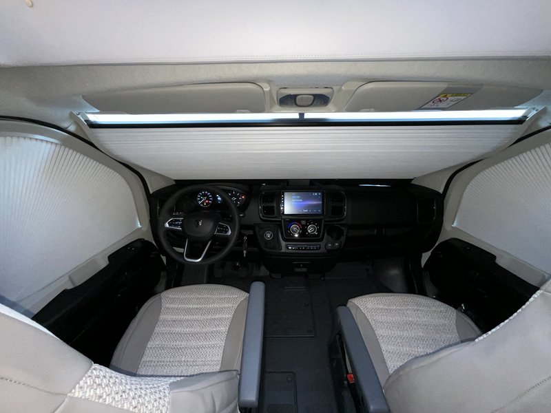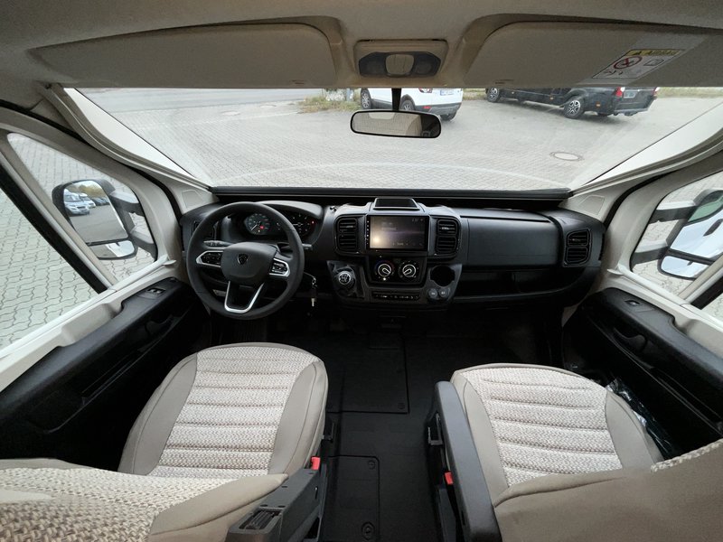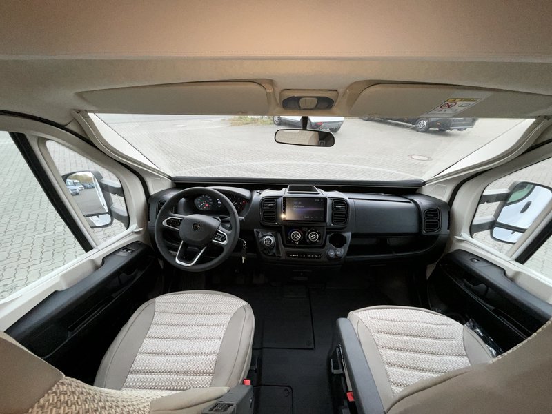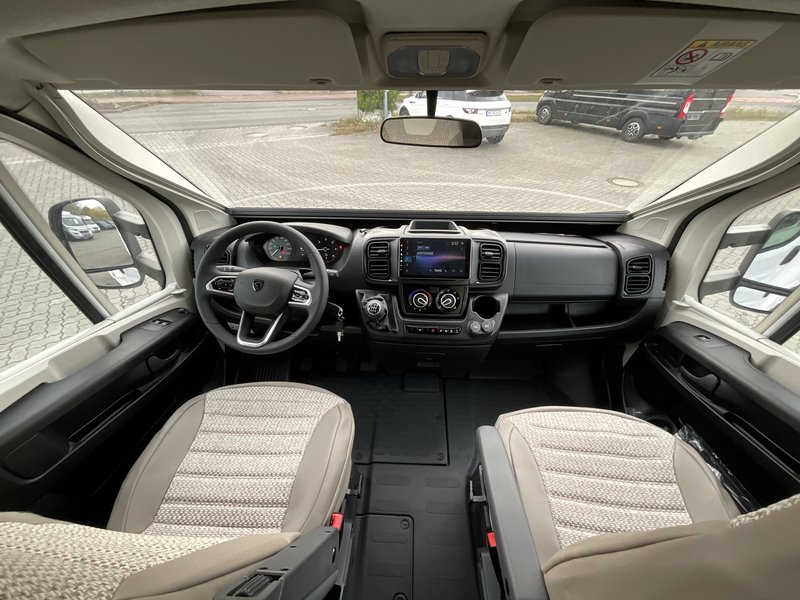 6-Gang Schaltgetriebe, Radio 9'' (AppleCarPlay und AndroidAuto), Lenkradsteuerung, Plisse-Rollos Fahrarhaus, Polsterung "PIANOSA", Spülbeckenabdeckung, Duocontrol, Aufbauteppich,
