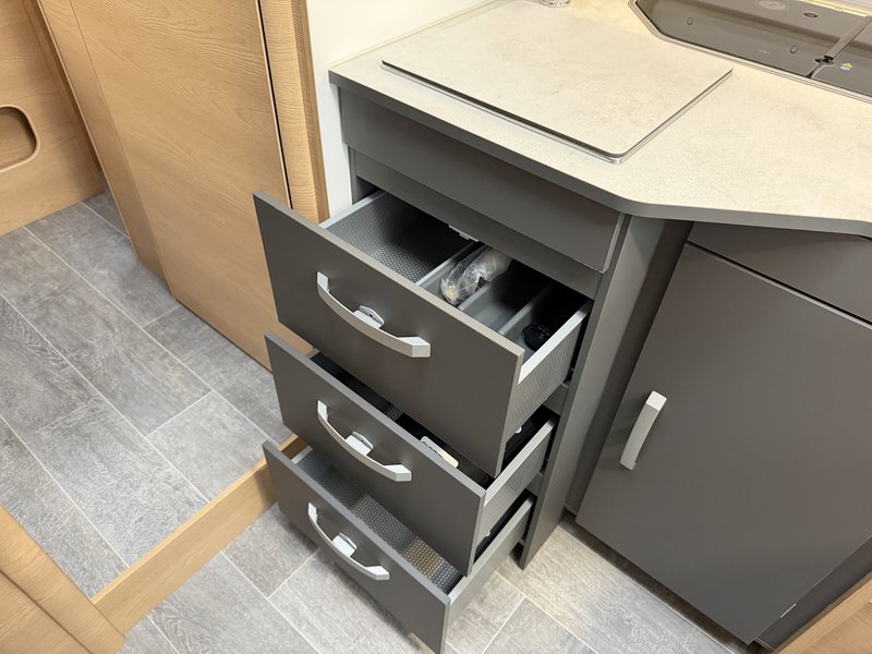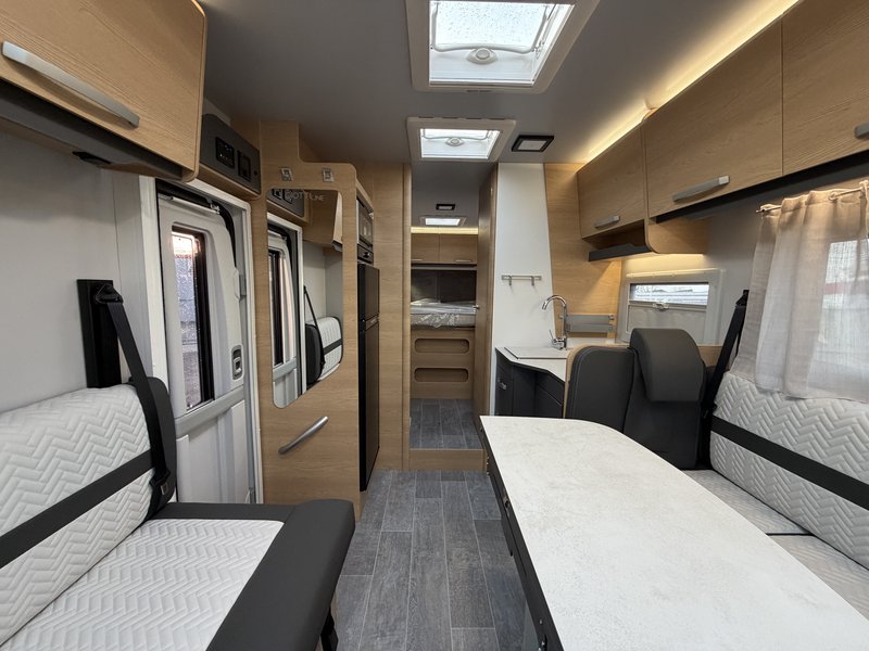 8-Gang Automatikgetriebe, Radio 9'' (AppleCarPlay und AndroidAuto), Lenkradsteuerung, Plisse-Rollos Fahrarhaus, Polsterung "Elba", Spülbeckenabdeckung, Duocontrol, Aufbauteppich,