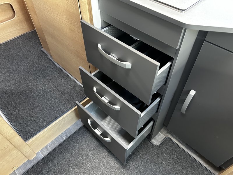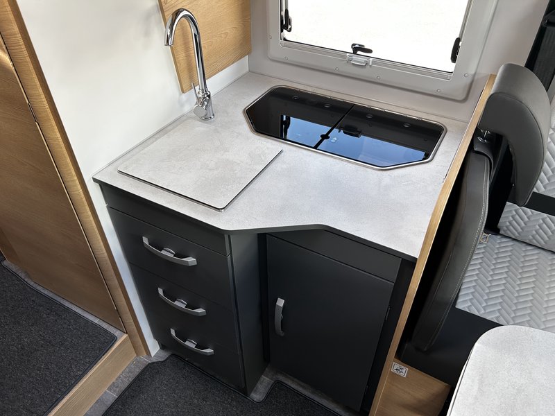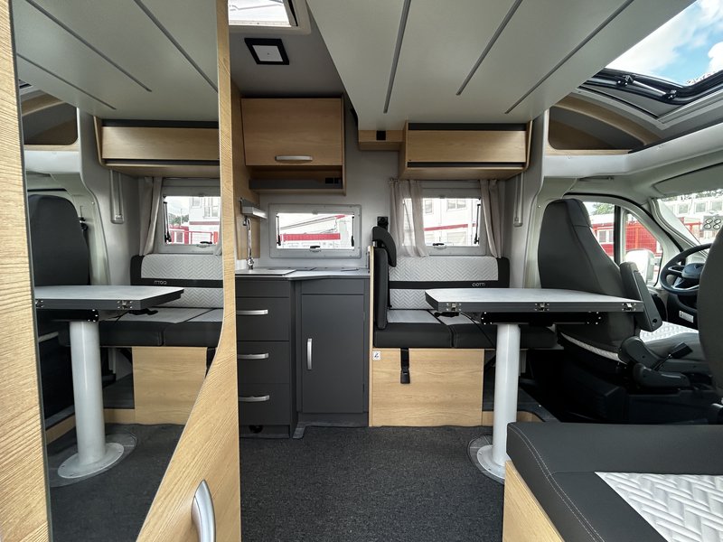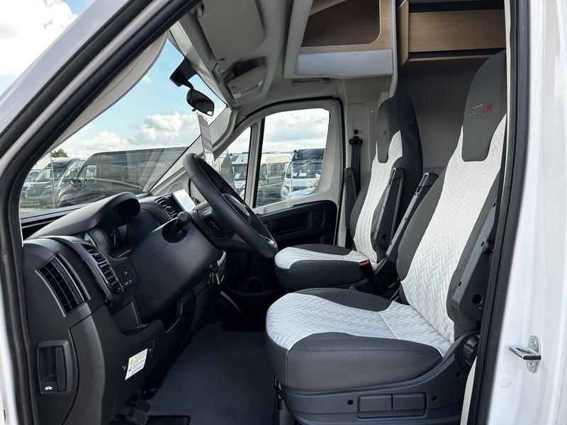 8-Gang Automatikgetriebe, Radio 9'' (AppleCarPlay und AndroidAuto), Lenkradsteuerung, Plisse-Rollos Fahrarhaus, Polsterung "Elba", Spülbeckenabdeckung, Duocontrol, Aufbauteppich,