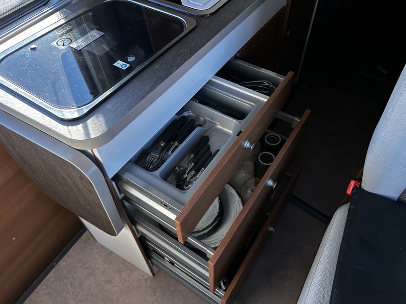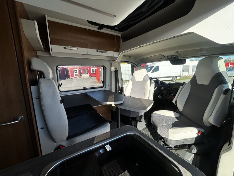 • Peugeot Comfort Paket: REMIS Fahrerhausverdunkelung, Fliegenschutztür an der Schiebetür, Vorverkabelung SAT / Solar, Vorverkabelung Rückfahrkamera, Taschen im Bettbereich, Tisch mit ausdrehbarer Verlängerung, Isofix Kindersicherung, Sitzbank seitlich erweiterbar, Truma CP Plus Bedienteil, Zusätzliche Steckdosen 230V / 12V