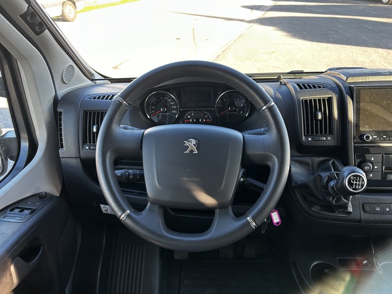 • Peugeot Chassis Paket : lackierter Stoßfänger vorne, 16" Leichtmetallfelgen, Lenkrad mit Bedienelementen, Lenkrad und Schaltknauf in Leder, Nebelscheinwerfer, Armaturentafel Techno Trim, Fix & Go Kit, Radiovorbereitung mit Lautsprecher, Batterie 105 A/h, DAB Antenne, USB Ladeanschluss, Cup Holder, Haltevorrichtung Tablet / Smartphone, Fahrerairbag, Beifahrerairbag, Kraftstofftank 90l, Manuelle Klimaanlage, Tempomat, Elektrisch verstell- und beheizbare Spiegel, Reifendrucküberwachung, ESP, Rotierbarer Captain Chair