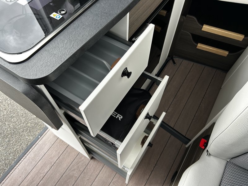 - Comfort Paket: REMIS Fahrerhausverdunkelung für Front- und Seitenscheiben (Entfall: Isoliermatten für Fahrerhaus) Fliegenschutztür an der Schiebetür Vorverkabelung SAT/Solar Vorverkabelung Rückfahrkamera Chassis 3,5 t light 16"-Stahlräder (215/75 R16 C; 6J X 16") 16"-Radblenden Nebelscheinwerfer Klimaautomatik Fahrerhaus (ersetzt Klimaanlage Fahrerhaus manuell) Instrumententafel mit Chromringen Zusätzliche Lautsprecher im Heck USB Ladesteckdose Lederlenkrad mit Schaltknauf in Leder, und Radiobedienelementen Lenkradfernbedienung 2 Stofftaschen im Bettbereich Ladebooster für Aufbaubatterie Isofix Kindersicherung Tisch mit sehr großer, ausschwenkbarer Tischverlängerung Sitzbank seitlich erweiterbar für komfortablere Sitzposition Truma CP-Plus-Bedienteil Truma iNet System Zusätzliche Steckdosen 2 x 230 V/2 x 12 V
