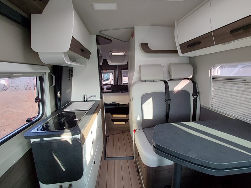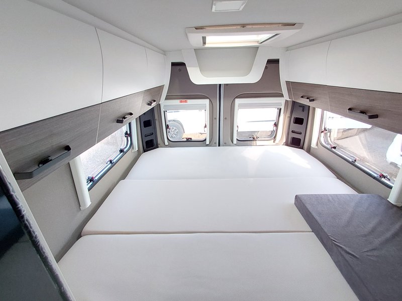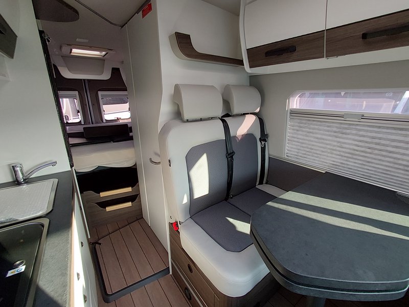 - Comfort Paket: REMIS Fahrerhausverdunkelung für Front- und Seitenscheiben (Entfall: Isoliermatten für Fahrerhaus) Fliegenschutztür an der Schiebetür Vorverkabelung SAT/Solar Vorverkabelung Rückfahrkamera Chassis 3,5 t light 16"-Stahlräder (215/75 R16 C; 6J X 16") 16"-Radblenden Nebelscheinwerfer Klimaautomatik Fahrerhaus (ersetzt Klimaanlage Fahrerhaus manuell) Instrumententafel mit Chromringen Zusätzliche Lautsprecher im Heck USB Ladesteckdose Lederlenkrad mit Schaltknauf in Leder, und Radiobedienelementen Lenkradfernbedienung 2 Stofftaschen im Bettbereich Ladebooster für Aufbaubatterie Isofix Kindersicherung Tisch mit sehr großer, ausschwenkbarer Tischverlängerung Sitzbank seitlich erweiterbar für komfortablere Sitzposition Truma CP-Plus-Bedienteil Truma iNet System Zusätzliche Steckdosen 2 x 230 V/2 x 12 V