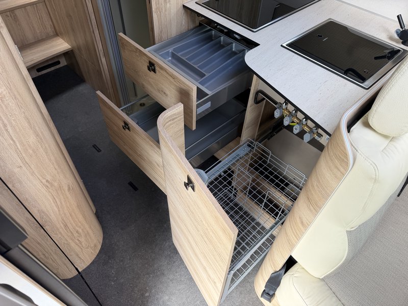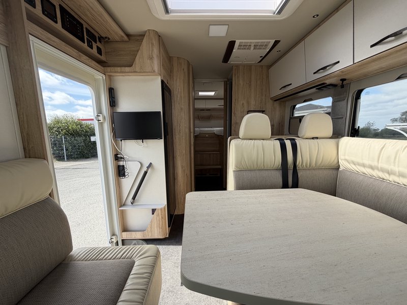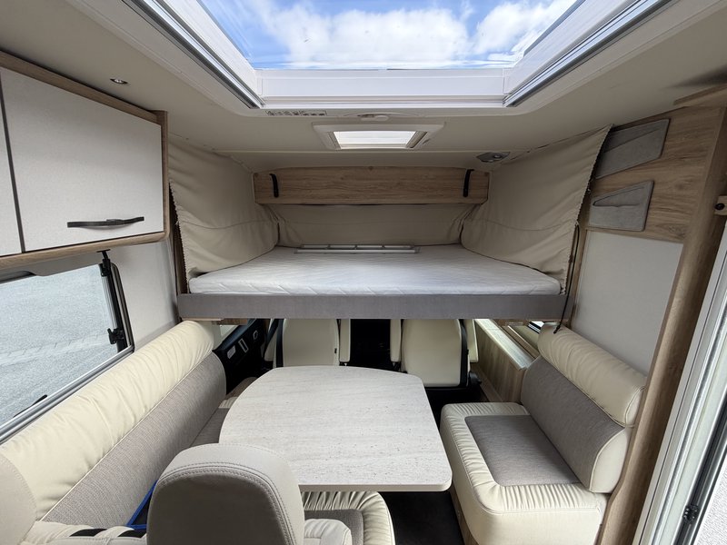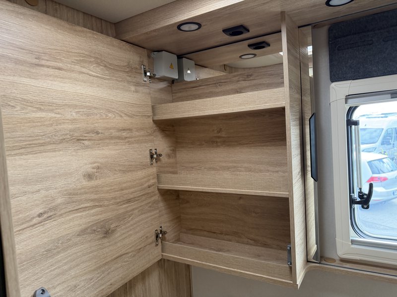 elektrische Parkbremse, Traction Plus inkl. Hill-Descent-Control, Lenkradbedienelemente, 16" Alufelgen, Lederlenkrad und Schaltknauf in Leder, Armaturenbretttafel in Techno-Trim, Moniceiver (Xzent) mit Rückfahrkamera, Comfort-Sitze Integra Line inkl. Höhenverstellung und Lordosestütze, Manuelles Verdunklungssystem, Dachhaube Heki, Aufbautür mit 2-Punktverriegelung + Zentralverriegelung, Elektrischer Dachlüfter, Mückengittertür, Vorverkabelung für Solaranlage