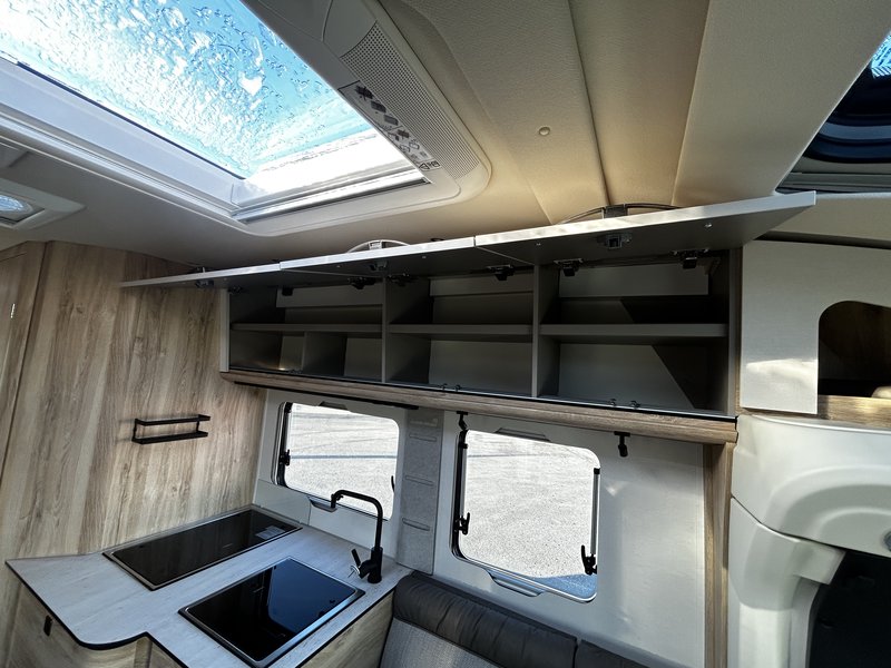 (Elektrische Außenspiegel (MB), Captain-Chair-Sitze (Aguti), Moniceiver (Xzent) mit Rückfahrkamera, elektrische Feststellbremse, Klimaanlage Fahrerhaus, Tempomat, Wärmedämmendes Glas mit Bandfilter, Lackierung Uni Schwarz, Aufbautür mit 2-Punktverriegelung + Zentralverriegelung, Dach - Panorama aufstellbares Kunststoffdach Sun Roof, Elektrischer Dachlüfter, Dachhaube Heki, manuelles Verdunkelungs-System für Fahrerhaus, Mückengittertür, Vorverkabelung für Solaranlage) Lackierung Uni-Schwarz MB Verdunklungs-System Fahrerhaus Panoramadachfenster "Sun Roof" , isoliert und aufstellbar Elektrischer Dachlüfter Hebekipp-Dachhaube (Heki) Mückengitter für Aufbautür Vorverkabelung für Solaranlage