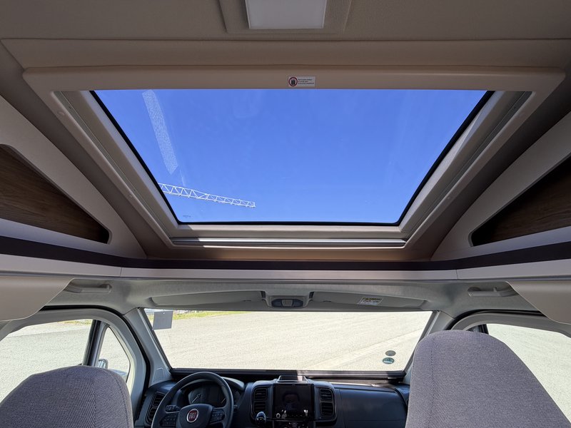 (elektrische Parkbremse, Captain-Chair-Sitze, Traction Plus inkl. Hill-Descent Control, Lenkradbedienelemente, Stoßfänger lackiert in Wagenfarbe, Nebelscheinwerfer inkl. Kurvenlicht, schwarzes Skid-Plate, 16 Alufelgen, Lederlenkrad und Schaltknauf in Leder, Armaturenbretttafel in Techno-Trim, Moniceiver (Xzent) mit Rückfahrkamera, Aufbautür mit 2 Punktverriegelung + Zentralverriegelung, Dach Panorama Glasdach Sun Roof isoliert, Elektrischer Dachlüfter, manuelles Verdunkelungs-System für Fahrerhaus, Mückengittertür, Vorverkabelung für Solaranlage, Dachhaube Heki, Radiovorbereitung inkl. DAB+) Aufbautür mit Zentralverriegelung Verdunklungs-System Fahrerhaus Panorama-Glasdach "Sunroof" Elektrischer Dachlüfter Hebekipp-Dachhaube (Heki) Mückengitter für Aufbautür Vorverkabelung für Solaranlage