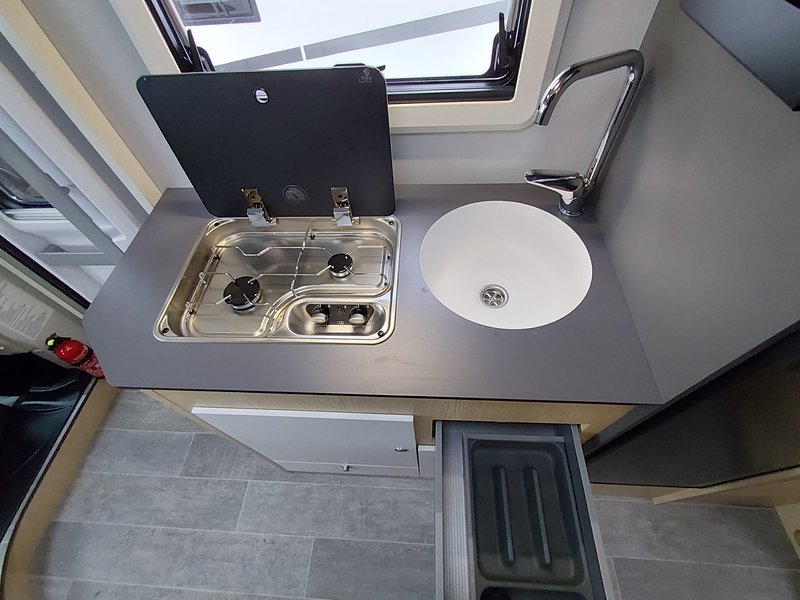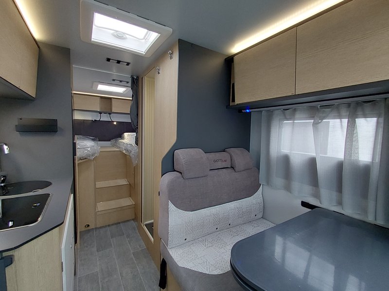 8-Gang Automatikgetriebe, Radio 9'' (AppleCarPlay und AndroidAuto), Lenkradsteuerung, Plisse-Rollos Fahrarhaus, Polsterung "Elba", Spülbeckenabdeckung, Duocontrol, Aufbauteppich,