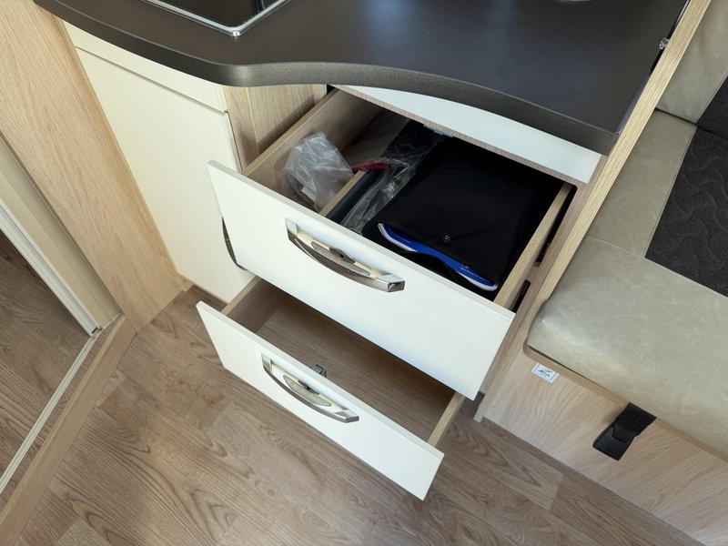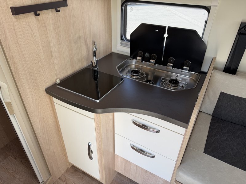 Manuelle Klimaanlage Fahrerhaus, ESP,Traction + Hill holder + Hill descent, Start & Stop, Verstärkte Federung, Radio Vorbereitung, Lackierte Stoßstange, Tempomat, Doppel Airbag, Fahrerhaussitzbezüge in Polsterstoff, Beheizbarer Abwassertank, Fliegenschutztür, Lattenrost auf allen Betten, LED Außenbeleuchtung, Truma Combi CP Plus Steuereinheit