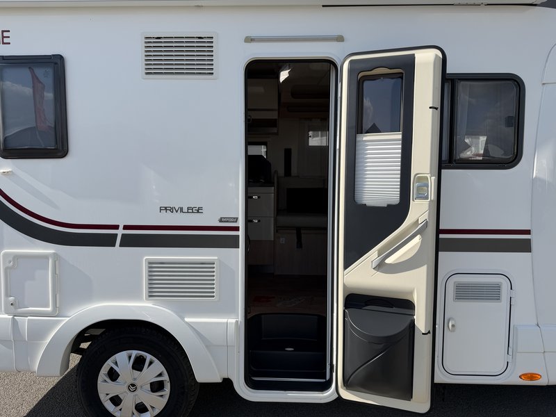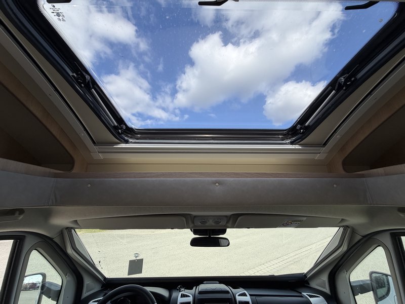 Aufbautür mit zwei Verschlüssen Fenster und Zentralverriegelung, Abs Hecksäulen mit LED-Rückleuchten, Rückfahrkamera mit 7 Zoll Monitor, Privilege Polster Design, Hutzen Panoramafenster SkyView zum öffnen