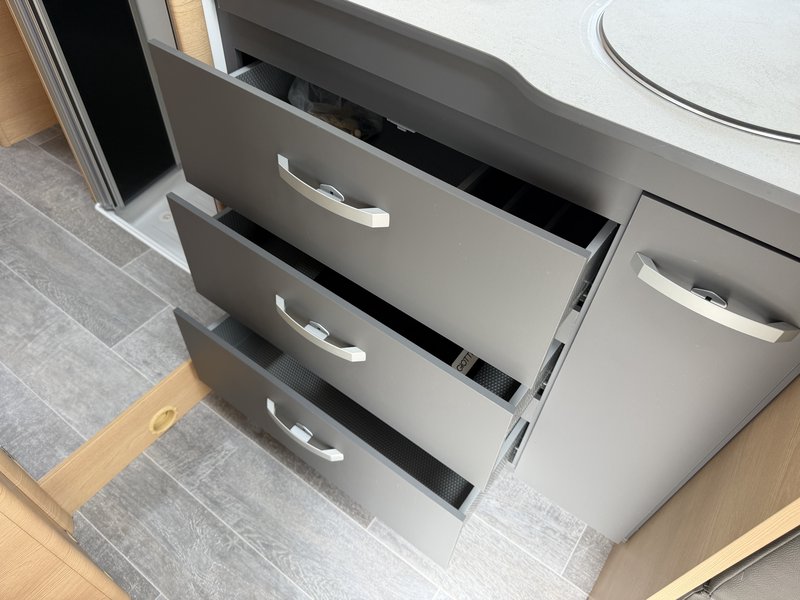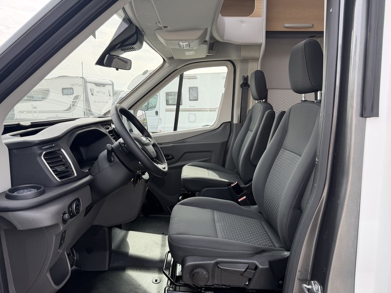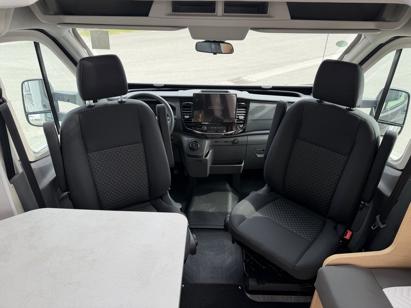 8-Gang-Automatikgetriebe, ein 9-Zoll-Radio mit Apple CarPlay und Android Auto sowie Lenkradsteuerung, plissierte Rollos und exklusive Elba-Polsterung. Details wie die Küchenspülenabdeckung, Teppichboden im Wohn- und Fahrgastraum sowie 16-Zoll-Leichtmetallfelgen runden das Interieurdesign ab. Abgerundet wird das Paket durch Lederlenkrad und Lederschaltknauf, Aluminiumeinsätze an den Lüftungsdüsen, Duocontrol und – auf Ford-Basis – den 165-PS-Motor, adaptive Geschwindigkeitsregelung, elektrisch beheizbare Windschutzscheibe und das Navigationssystem SYNC 4.