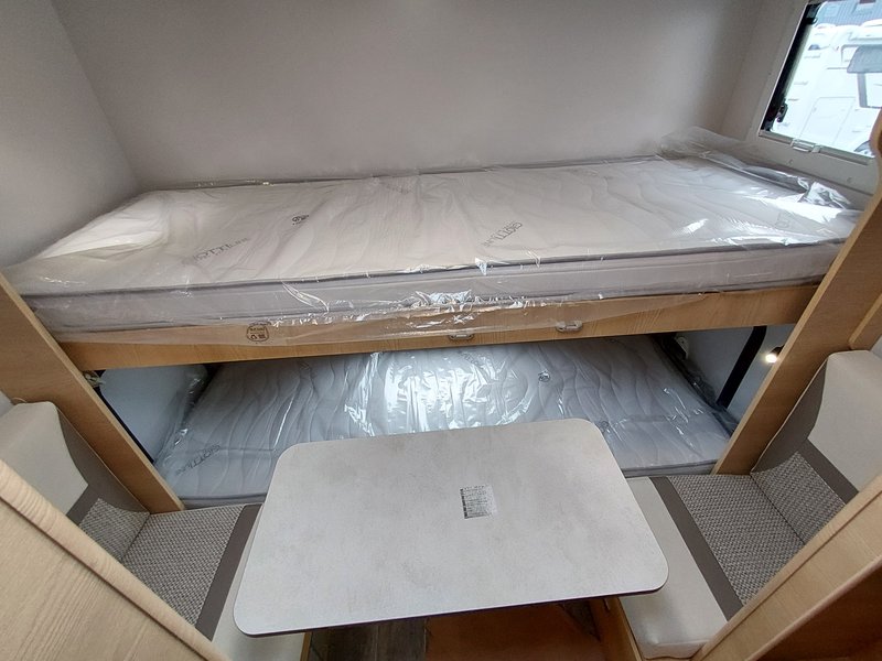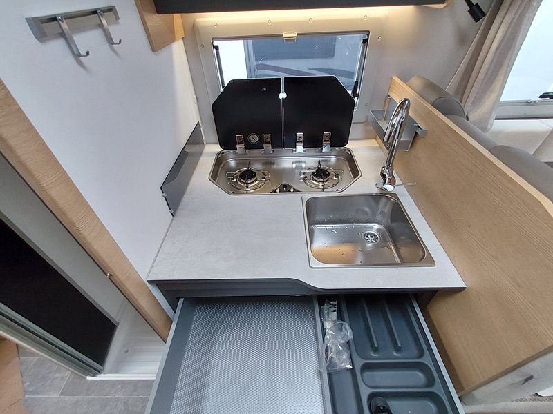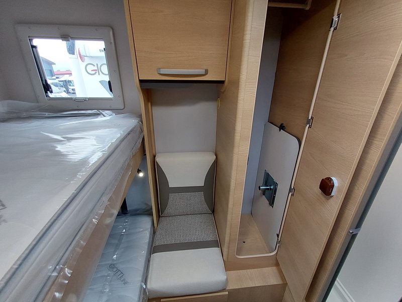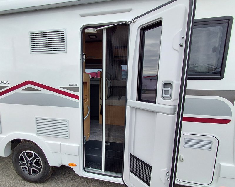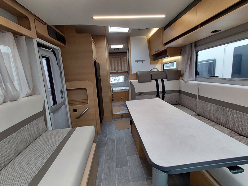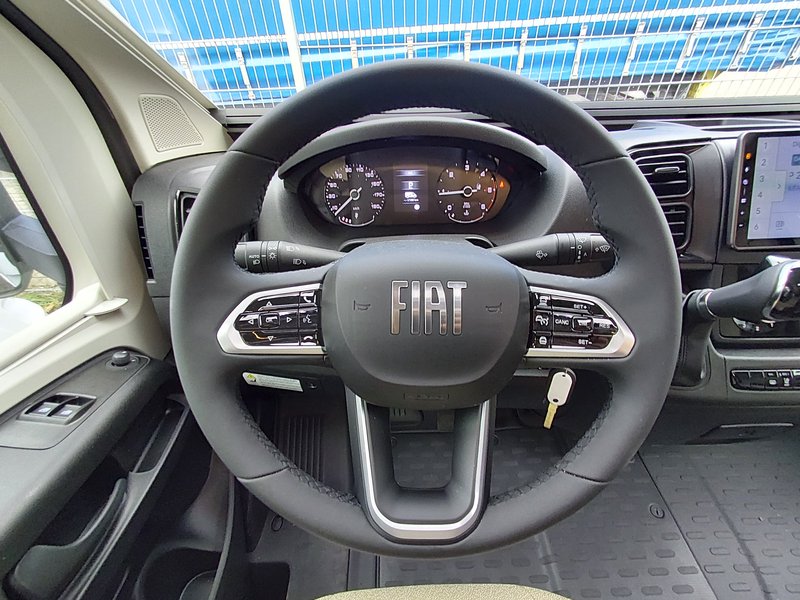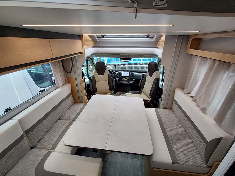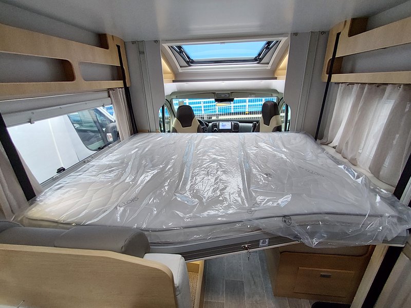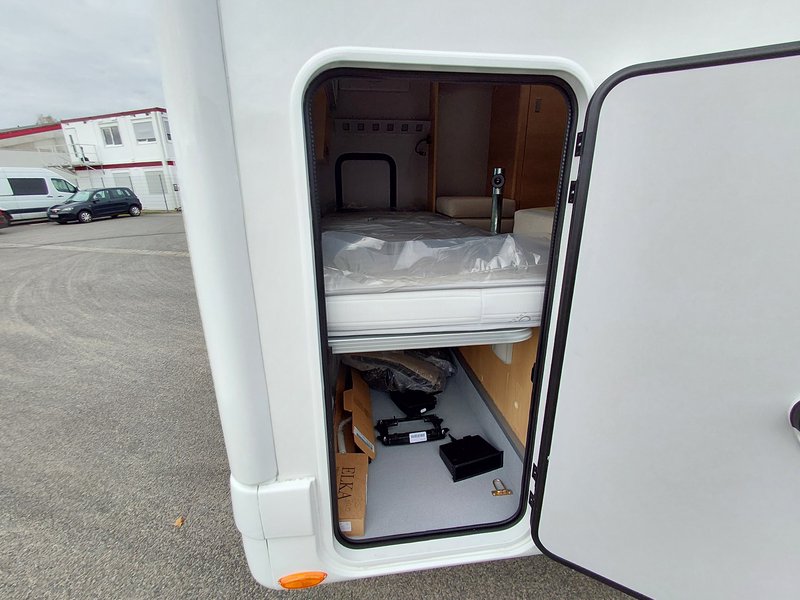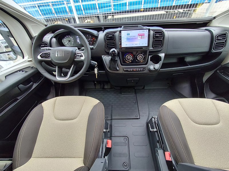 Lackierte Stoßfänger + Nebelscheinwerfer, Radio 6,8'' (AppleCarPlay und AndroidAuto), Lenkradsteuerung, HD-Rückfahrkamera, passende Fahrerhaussitzbezüge, XL 2-Punkt-Tür + Zentralverriegelung 8-Gang Automatikgetriebe, Alufelgen 16" + Lederlenkrad, Radio 9'' (AppleCarPlay und AndroidAuto) + Lenkradsteuerung, Plissee-Jalousien Fahrerhaus, Polsterung "Elba", Küchenspülenabdeckung, Duocontrol, Aufbauteppich, Fahrerhausteppich