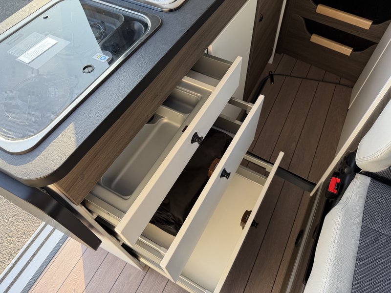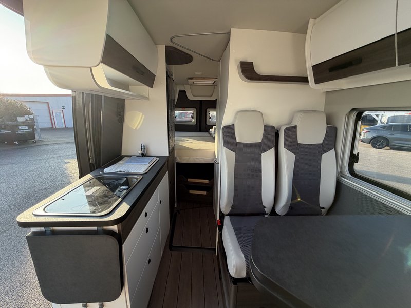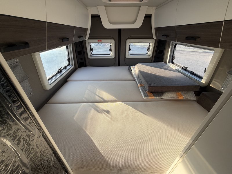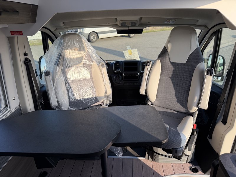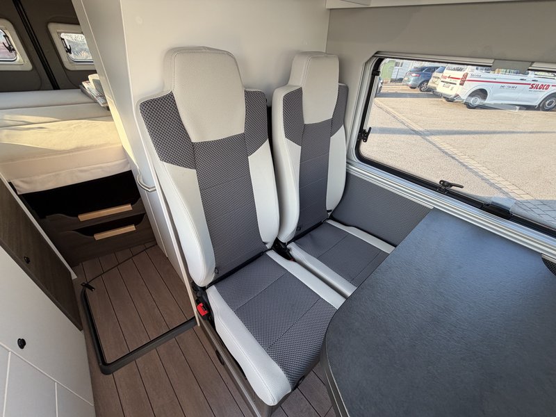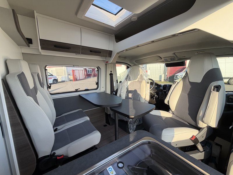 - Comfort Paket: REMIS Fahrerhausverdunkelung für Front- und Seitenscheiben (Entfall: Isoliermatten für Fahrerhaus) Fliegenschutztür an der Schiebetür Vorverkabelung SAT/Solar Vorverkabelung Rückfahrkamera Chassis 3,5 t light 16"-Stahlräder (215/75 R16 C; 6J X 16") 16"-Radblenden Nebelscheinwerfer Klimaautomatik Fahrerhaus (ersetzt Klimaanlage Fahrerhaus manuell) Instrumententafel mit Chromringen Zusätzliche Lautsprecher im Heck USB Ladesteckdose Lederlenkrad mit Schaltknauf in Leder, und Radiobedienelementen Lenkradfernbedienung 2 Stofftaschen im Bettbereich Ladebooster für Aufbaubatterie Isofix Kindersicherung Tisch mit sehr großer, ausschwenkbarer Tischverlängerung Sitzbank seitlich erweiterbar für komfortablere Sitzposition Truma CP-Plus-Bedienteil Truma iNet System Zusätzliche Steckdosen 2 x 230 V/2 x 12 V