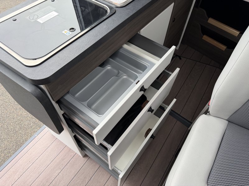 - Comfort Paket: REMIS Fahrerhausverdunkelung für Front- und Seitenscheiben (Entfall: Isoliermatten für Fahrerhaus) Fliegenschutztür an der Schiebetür Vorverkabelung SAT/Solar Vorverkabelung Rückfahrkamera Chassis 3,5 t light 16"-Stahlräder (215/75 R16 C; 6J X 16") 16"-Radblenden Nebelscheinwerfer Klimaautomatik Fahrerhaus (ersetzt Klimaanlage Fahrerhaus manuell) Instrumententafel mit Chromringen Zusätzliche Lautsprecher im Heck USB Ladesteckdose Lederlenkrad mit Schaltknauf in Leder, und Radiobedienelementen Lenkradfernbedienung 2 Stofftaschen im Bettbereich Ladebooster für Aufbaubatterie Isofix Kindersicherung Tisch mit sehr großer, ausschwenkbarer Tischverlängerung Sitzbank seitlich erweiterbar für komfortablere Sitzposition Truma CP-Plus-Bedienteil Truma iNet System Zusätzliche Steckdosen 2 x 230 V/2 x 12 V
